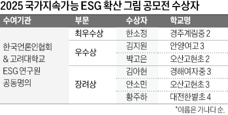 ESG 확산 그림 공모전에서는 한소정 양(경주계림중 2학년)이 최우수상을 받았다. 김지원 양(안양여자고 3학년)과 박고은 양(오산고현초 2학년)이 우수상을, 김아현 양(경해여자중 3학년), 안소민 양(오산고현초 3학년), 황주하 양(대전한밭초 4학년)이 장려상을 받았다. 국가 ESG 우수기업 포상에서는 제일에듀스, 전남신용보증재단, 그린알로에, 평화발레오, 67디앤씨, 강남대성학원, 코스터, 온누리헬스케어, KB국민은행, 서울디지털대학교 등 37개 기업 및 기관이 수상의 영예를 안았다.